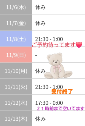 なので、もしかしたら日曜日出勤出来る確率上がったので一応時間はまだ載せてませんが夜には出勤上げられるかと思います![]()